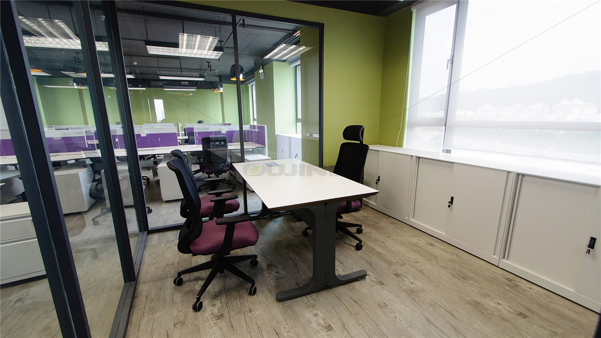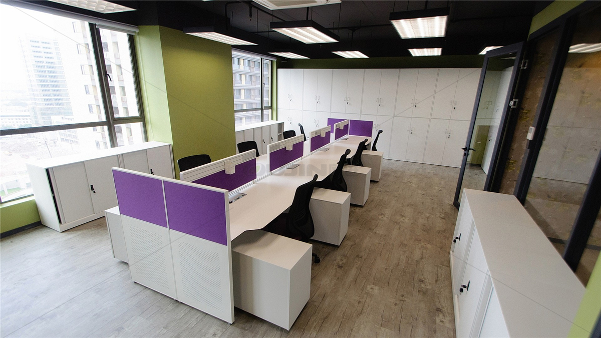 在通透、有序的公共辦公環境中。統一采用具體公司標注性的紫色調,發揮色彩管理功能的同時,也讓整個辦公空間統一協調,在便于溝通交流的同時又避免了面面相覷的尷尬。紫色,白色的相互作用,鮮活的色彩也為整個工作區營造出活力無限的辦公氛圍。