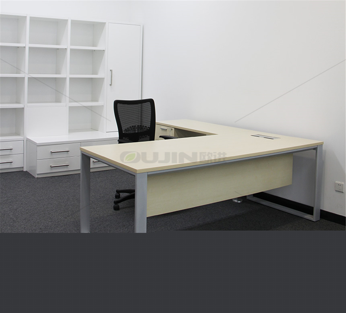 經理辦公室的采用鋼板結構的辦公桌非常耐看,又充滿了時尚簡約的氣息,這是小編的感覺。辦公桌鋼腳采用經典的閃銀色噴涂防銹工藝,辦公桌臺面用采E1級歐洲標準的防火板,選用了淺木紋線搭配。有一種既然是經典又充滿現代感,那么在設計上一定避免繁瑣,班臺直線簡約,桌面采用鋼制四腳立于柜體上,透視立體感強,細節之處充滿靈動。