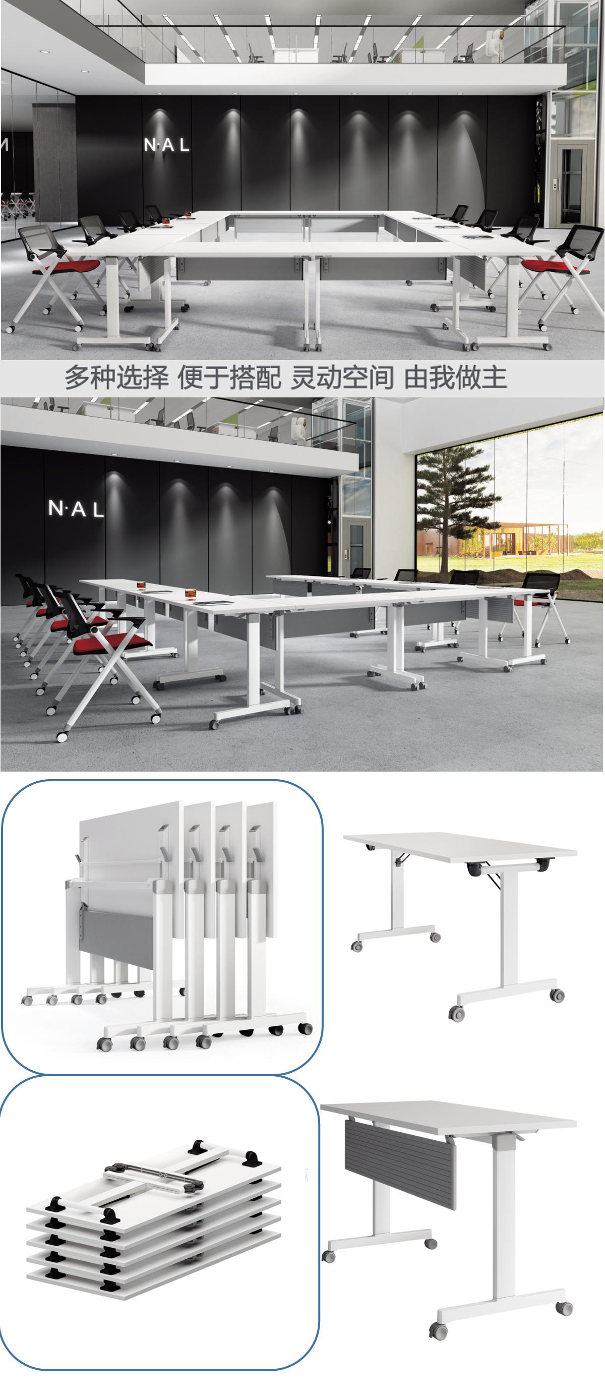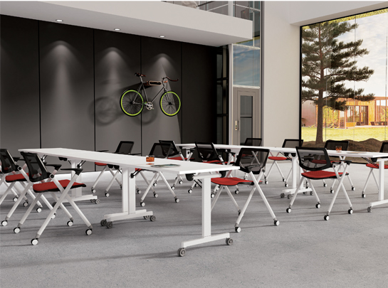 培訓桌視覺簡約,結構精巧合理的單人位員工桌,能夠應對不同的辦公環境需求,組合出多種多樣的工作位。即使散落布置在角落,也不失一道亮麗風景。